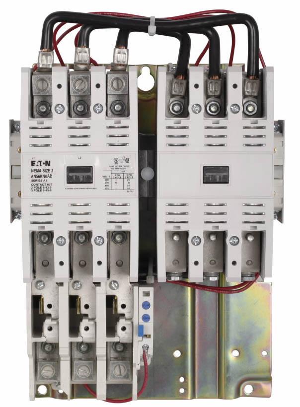 Eaton Freedom NEMA motor control starter, Eaton NEMA freedom series Reversing reset relay starter, 40 hp at 208V, 50 hp at 240V, 100 hp at 480,600V maximum horsepower, 120V/60 Hz or 110V/50 Hz coil voltage, 135A, Three-pole, Size 4.