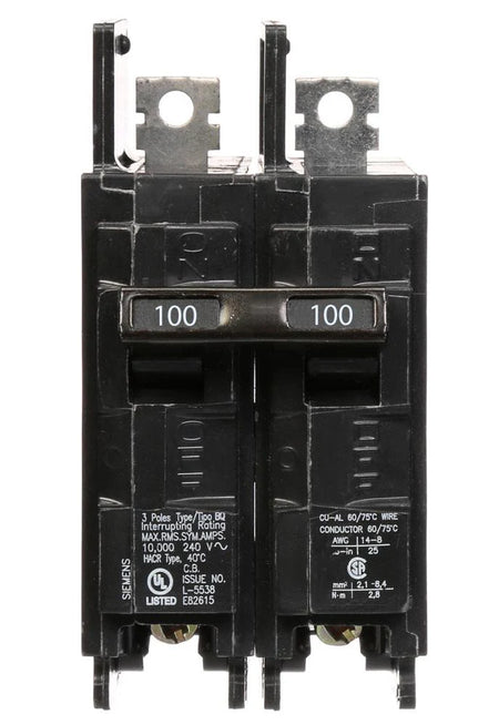 BQ2B100 - Siemens 100 Amp Double Pole 120/240V BQ Bolt-On Circuit Breaker
