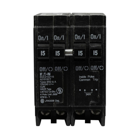Eaton Br Thermal Magnetic Circuit Breaker,Type Bqc 1-Inch Ctl Plug-On Circuit Breaker,Includes Rejection Tab Feature,(2) Two-Pole 15 A,10 Kaic,Four-Pole,120/240V,Bqc,Common Breaker Trip,#14-4 Awg Cu/Al,Bqc,Type Br Loadcenters