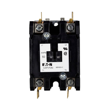 Eaton definite purpose contactor, Quick, 60A, 110-120 Vac, 50/60 Hz, Open with metal mounting plate, 15-50A, two- and three-pole, 60A, Contactor, Two-pole, 75A, Box lugs (posidrive setscrew) and quick connect terminals (side-by-side)