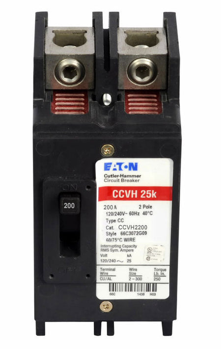 Eaton Type CCV Tenant Main Circuit Breaker,Tenant main circuit breaker,200 A,25 kAIC,Two-pole,120/240 V,#2/0 AWG-300 kcmil Cu/Al,CCV,Type ECC unit enclosures.