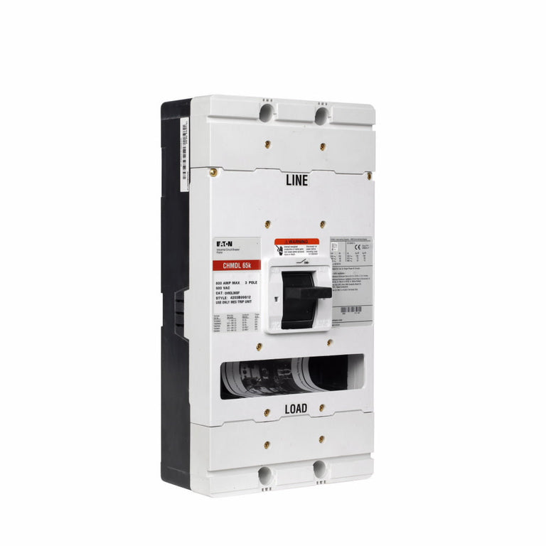 Cutler Hammer / Eaton / Westinghouse, Series C, type CHMDL, 100% rated, 3P, 3PH, 800A, 600V, 65kA@480V, high interrupting capacity, 40 degree C, bolt-on, frame only, thermal magnetic molded case circuit breakers.