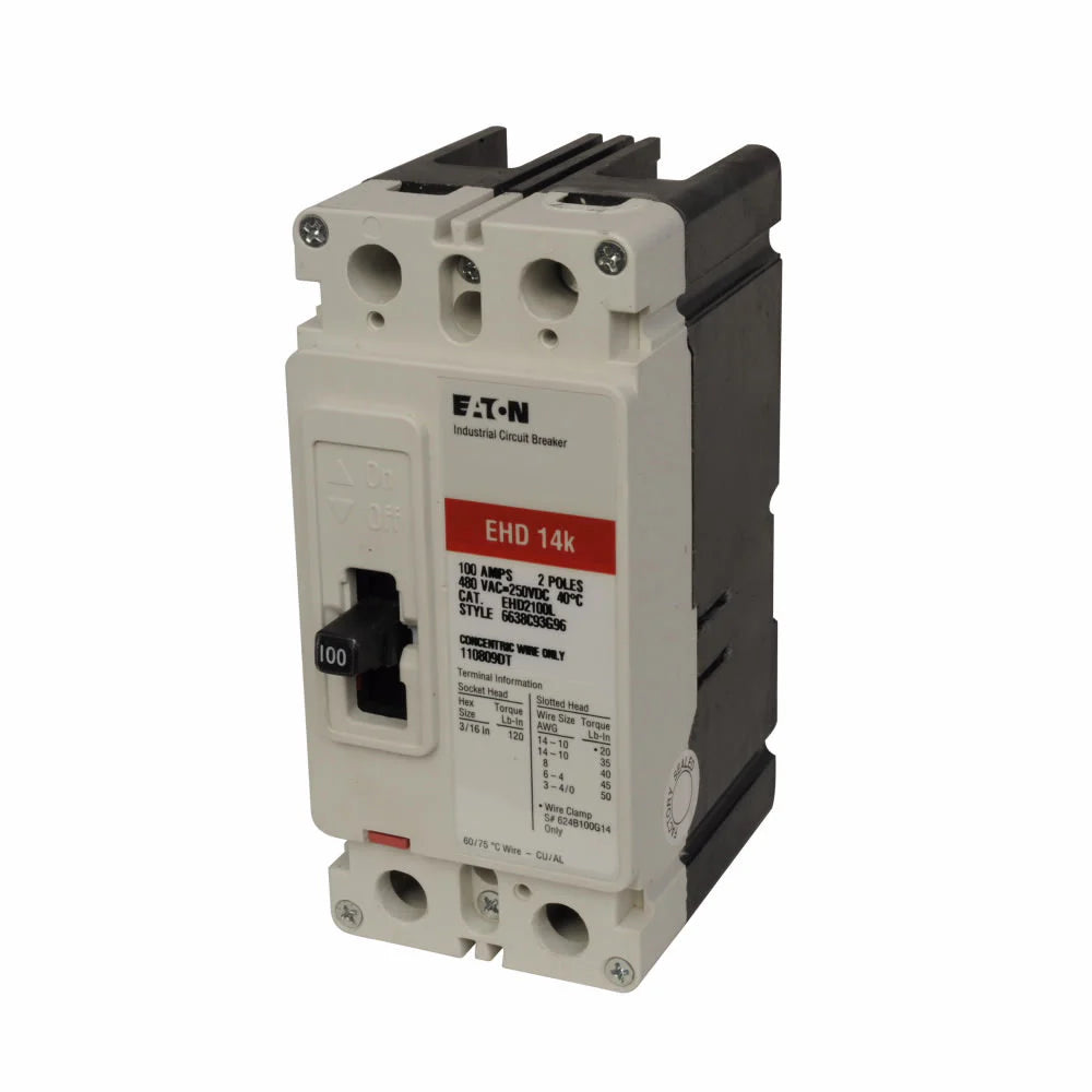 The Cutler Hammer EHD2035 is a Molded Case Circuit Breaker. This type EHD circuit breaker is a member of The Series C family. The EHD2035 is a 2 pole, 480 Volt, 35 amp rated circuit breaker, with an AIC rating of 14kA@480V. The EHD2035 is manufactured by Cutler Hammer. The EHD2035 uses a Bolt-On connection. Includes Thermal Magnetic protection.