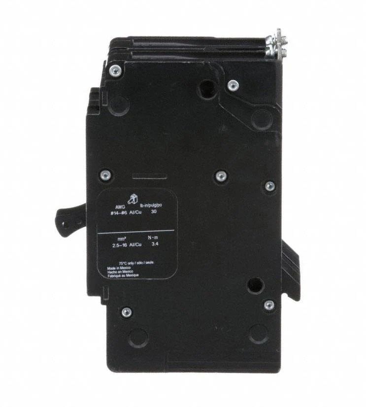 The EJB24020 is a 2-pole bolt-on circuit breaker, rated at 20A at a system voltage of 480Y/277V AC. The circuit breaker has a thermal-magnetic trip unit and a signal indicator to indicate when a trip occurred. The device has a hold current of 270A (the maximum current the breaker can be held at to ensure a trip will occur) and a trip current of 875A (the current value when the breaker is guaranteed to trip).