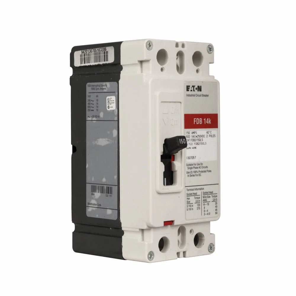 The Cutler Hammer FDB2090 is a Molded Case Circuit Breaker. This type FDB circuit breaker is a member of The Series C family. The FDB2090 is a 2 pole, 600 Volt, 90 amp rated circuit breaker, with an AIC rating of 14kA@600V. The FDB2090 is manufactured by Cutler Hammer. The FDB2090 uses a Bolt-On connection. Includes Thermal Magnetic protection.