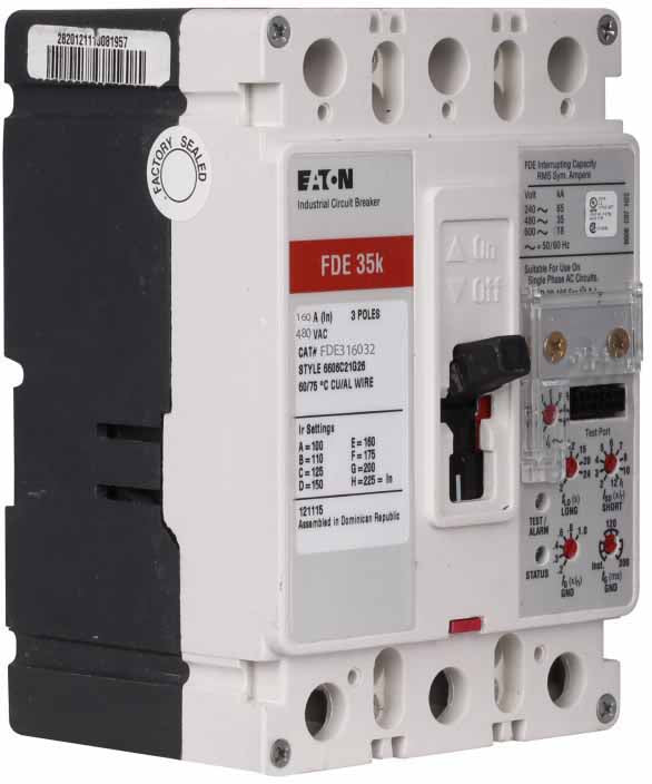 Eaton Series C electronic molded case circuit breaker, F-frame, FDE, Digitrip 310 RMS, Electronic LSI trip, Three-pole, 160 A, 600 Vac, 250 Vdc, 65kA@240 Vac, 35kA@480 Vac, Load side, Not UL rated, 50/60 Hz