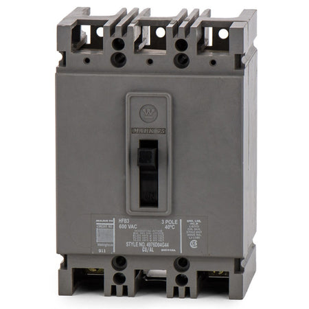 The Westinghouse HFB3060 is a Molded Case Circuit Breaker. This type HFB circuit breaker is a member of The MARK 75 family. The HFB3060 is a 3 pole, 600 Volt, 60 amp rated circuit breaker, with an AIC rating of 25kA@480V. The HFB3060 is manufactured by Westinghouse, Cutler Hammer. The HFB3060 uses a Bolt-On connection. Includes Thermal Magnetic protection.
