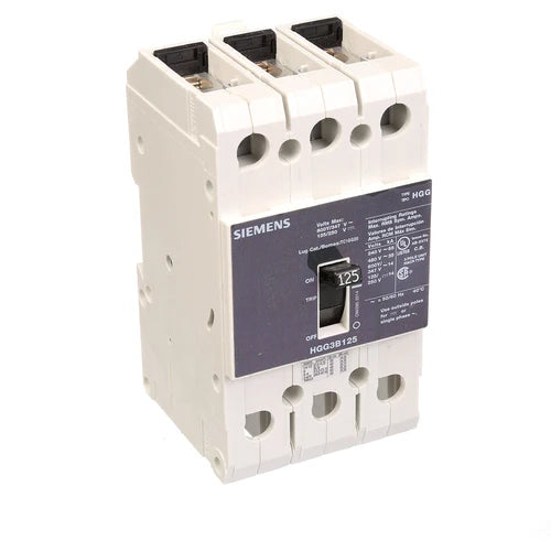 The Siemens HGG3B125L is a Molded Case Circuit Breaker. This type HGG circuit breaker is a member of The VL Series family. The HGG3B125L is a 3 pole, 600 Volt, 125 amp rated circuit breaker, with an AIC rating of 35kA@480V. The HGG3B125L is manufactured by Siemens. The HGG3B125L uses a Feed-Thru connection. Includes Thermal Magnetic protection.