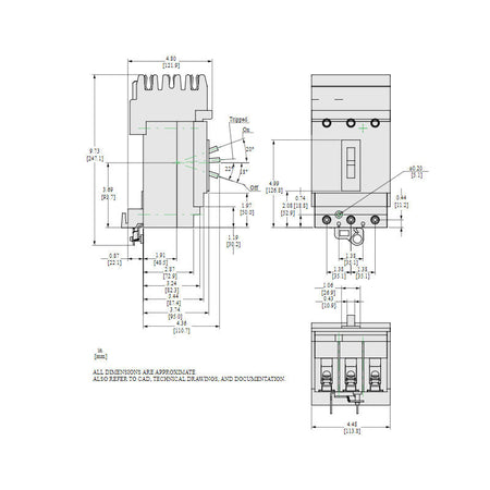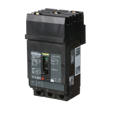 Square D, Powerpact, type HJA, 3PH, 3P, ABC phase connection, 60A, 600V, 65kA@480V, current limiting, i-line style plug-in, UL listed, suitable for reverse-fed applications, complete with non-interchangeable trip, LI - Long-Time and Instantaneous trip functions, thermal magnetic, molded case circuit breakers.