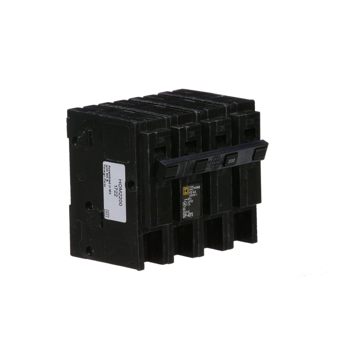 Homeline miniature circuit breakers are engineered and designed for fast installation and superior circuit protection. Homeline circuit breakers are designed to plug into Homeline load centers to provide circuit protection. This circuit breaker provides standard circuit protection and is HACR rated. This 2 pole circuit breaker with plug in mounting is rated 200A at 120/240 VAC. HOM breakers provide 10 kA breaking capacity. The electrical connections are box lugs that will accept 1 wires. The box lugs will accept a wire range of 4 AWG to 2/0 AWG copper or aluminum wire. This circuit breaker has a height of 3.13 inches, a width of 2.0 inch and depth of 2.98 inches. HOM Homeline miniature circuit breakers are UL Listed.