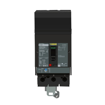 Square D, Powerpact, type JJA, 3P, ABC phase connection, 3PH, 175A, 600V, 65kA@480V, UL listed, current limiting, i-line style plug-in, suitable for reverse fed applications, complete with non-interchangeable trip, LI - Long-Time and Instantaneous trip functions, thermal magnetic, molded case circuit breakers.