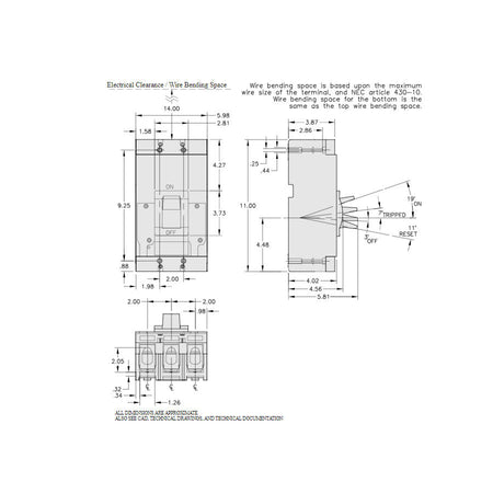 Square D, LAL Series, type LAL, 3P, 3PH, 300A, 600V, 30kA@480V, standard interrupting capacity, feed-thru, complete with LI - Long-Time and Instantaneous trip functions and line & load side lug terminals, thermal magnetic molded case circuit breakers.