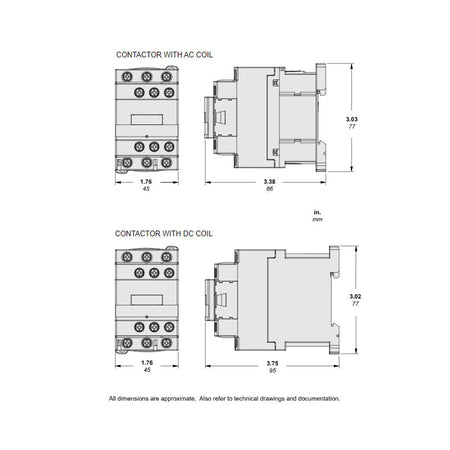 Tesys D Contactors Have Been Designed For Perfect Integration Into Control Systems. They Can Be Used To Create Motor Starters For Almost Any Type Of Application. Tesys D Contactors Are Available In 13 Contactor Ratings For Inductive Motor Applications Up To 150 Full-Load Amps And Resistive Loads Up To 200 Amps. This 18A Inductive 3 Pole Iec Contactor Can Be Mounted On Din Rail Or Mounted Directly To A Panel. Contactors Have Both Horsepower And Kw Motor Rating For International Acceptance. Contactor Is Rated For 5Hp At 200-208Vac, 5Hp At 240Vac, 10Hp At 480Vac And 15Hp At 600Vac Three Phase. Contactor Is Also Rated For 1Hp At 115Vac And 3Hp At 240Vac Single Phase. When Used With A 480Vac Up To 60A Circuit Breaker, This Contactor Can Have A Sccr Up To 85Ka. When Used With Up To A 600Vac 40A Class J Or Cc Fuse, This Contactor Can Have A Sccr Up To 100Ka. Contactor Is Supplied With A 240 Vac 50/60 Hz Coil. Contactor Has One Normally Open And One Normally Closed Auxiliary Contact Built-In As Standard. The Nc Contact Is Mirror Certified. Screw Clamp Terminals Are Used For Load And Auxiliary Connections. An Extensive Line Of Accessories Makes It Easy To Meet The Requirements Of Most Applications. The Contactor Is 3.03 Inches Tall, 1.77 Inches Wide And 3.39 Inches Deep. It Weighs 0.73 Lbs. Contactor Is Certified To Ul, Csa, Iec, Ccc, Eac And Marine Standards. Contactor Also Meets The Requirements Of Rohs/Reach Making It A Green Premium Product.
