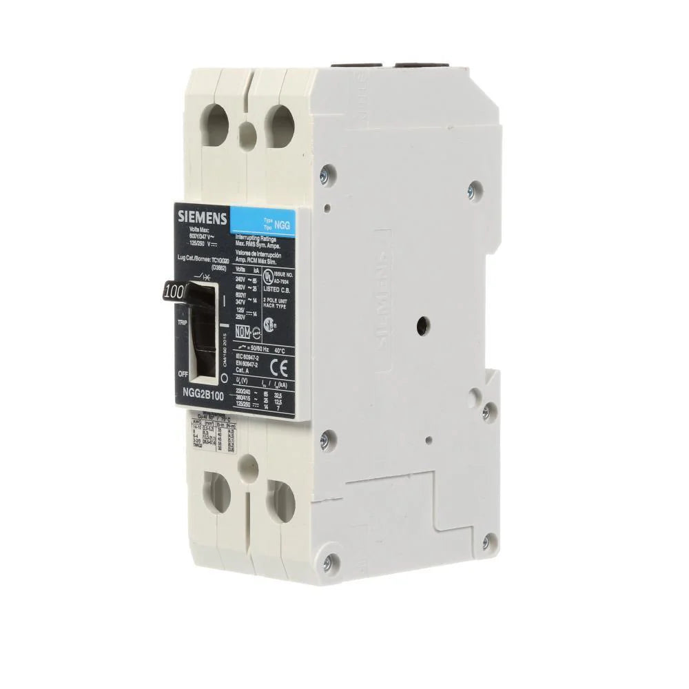 The Siemens NGG2B090L is a Molded Case Circuit Breaker. This type NGG circuit breaker is a member of The VL Series family. The NGG2B090L is a 2 pole, 600 Volt, 90 amp rated circuit breaker, with an AIC rating of 25kA@480V. The NGG2B090L is manufactured by Siemens. The NGG2B090L uses a Feed-Thru connection. Includes Thermal Magnetic protection. Every part My Circuit Breakers sells is also backed by our industry-leading gold standard 2-year warranty.