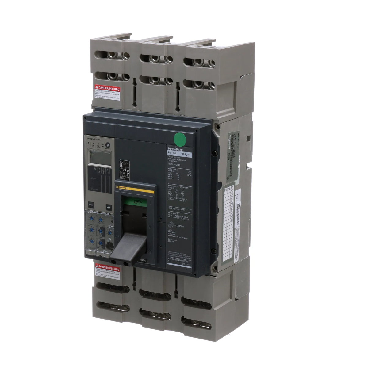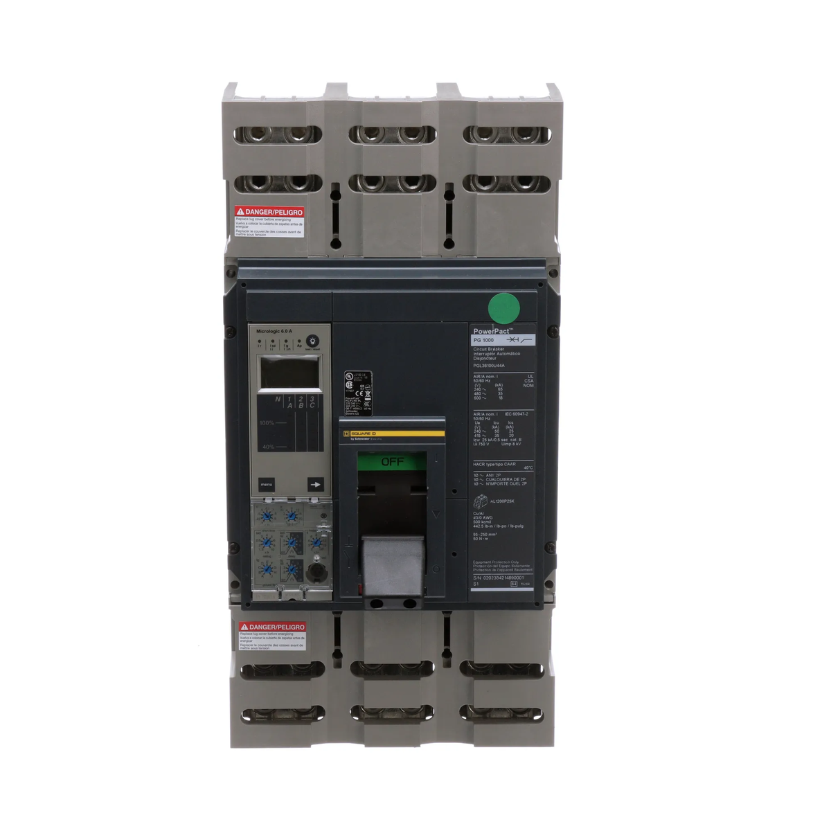 Schneider Electric / Square D, Powerpact, type PGL, 3P, 3PH, 1000A, 600V, 35kA@480V, UL listed, standard interrupting capacity, feed-thru, complete with micrologic interchangeable ammeter 6.0A trip, LSIG - Long-Time, Short-Time, Instantaneous and Ground Fault trip functions and line & load side lug terminals, solid state electronic, molded case circuit breakers.