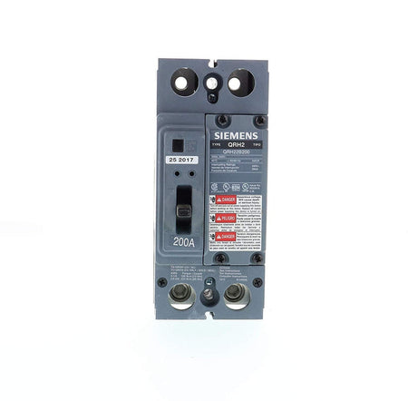 Siemens, QR Series, type QRH2, 2P, 1PH, 200A, 240V, 25kA@240V, high interrupting capacity, bolt-on, complete with non-interchangeable trip, LI - Long-Time and Instantaneous trip functions and load side lug terminals, thermal magnetic molded case circuit breakers.