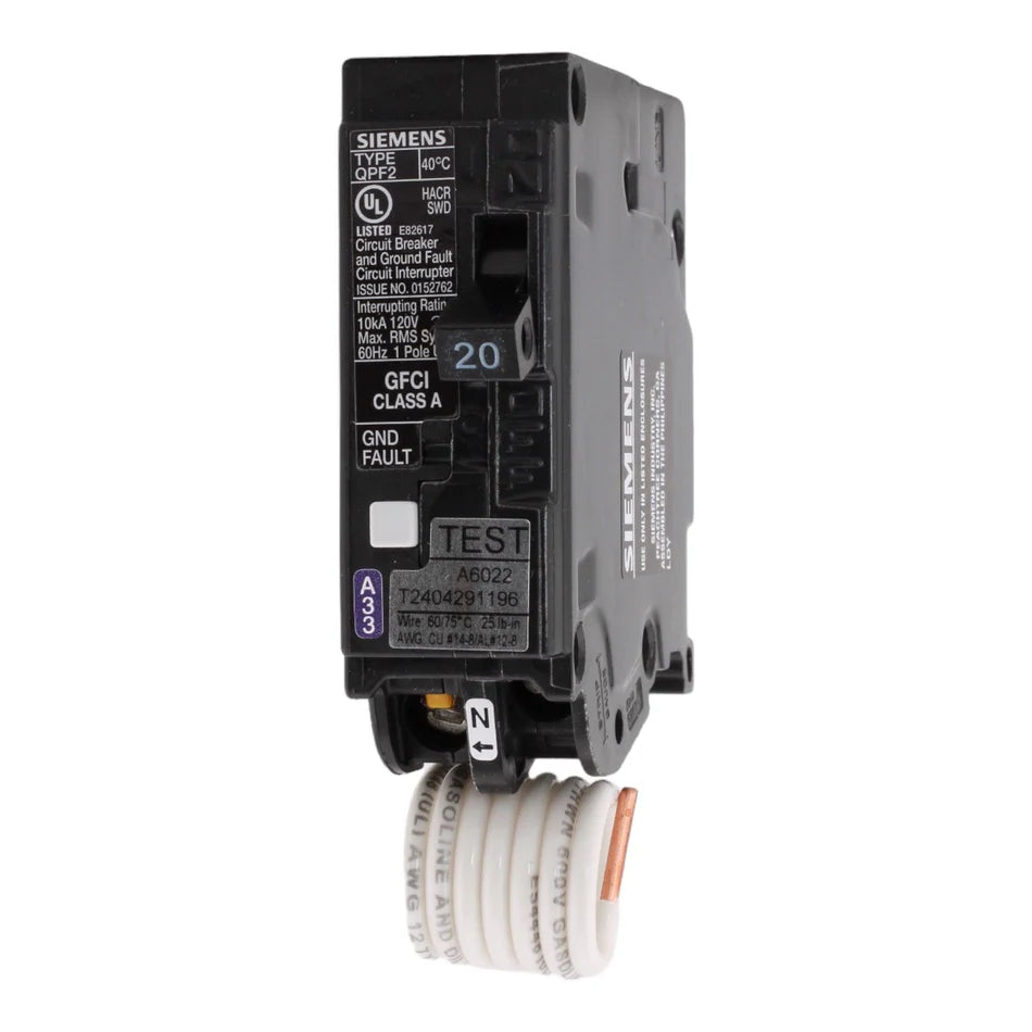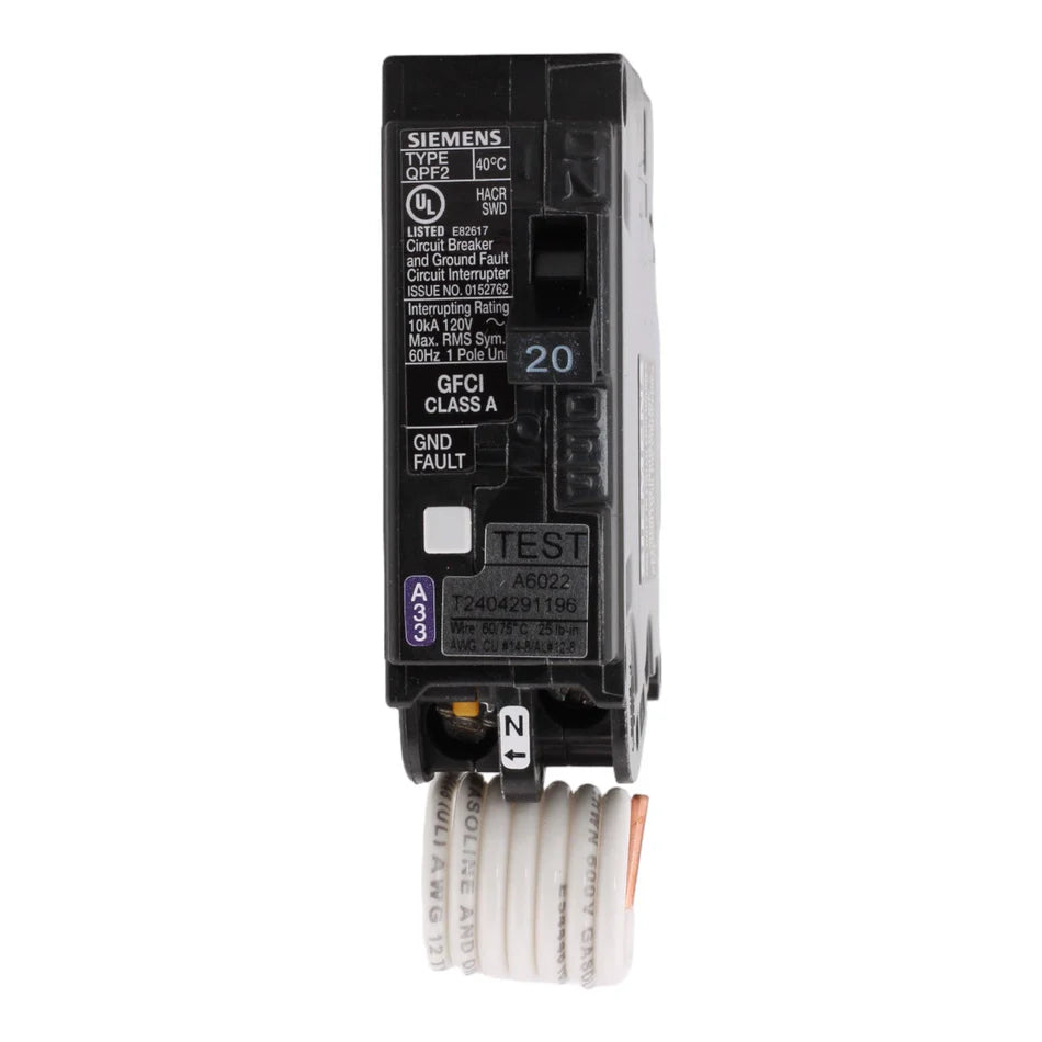Siemens QF120A 20 Amp Single-Pole GFCI Circuit Breaker – Pigtail Neutral – 120V