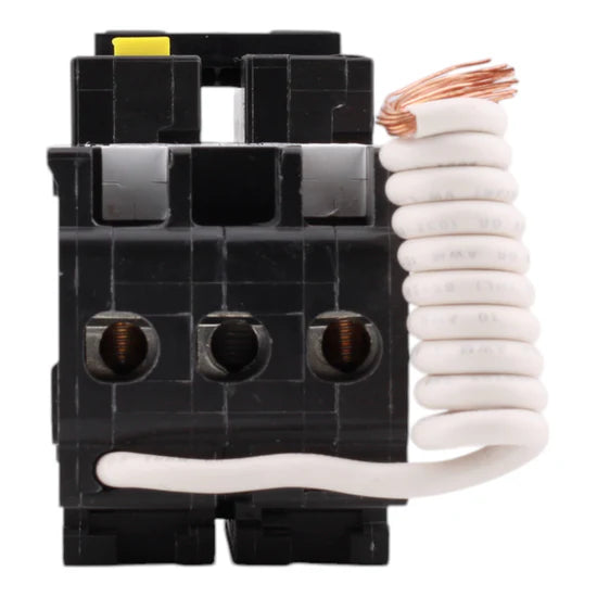 The **Schneider Electric Square D HOM220GFI 20 Amp two-pole GFCI circuit breaker provides reliable ground-fault protection for residential branch circuits. Designed specifically for Homeline load centers, this breaker automatically interrupts power when a ground fault is detected, helping reduce shock hazards. The pigtail neutral connection ensures proper installation, while the plug-on mounting allows quick integration into compatible panels.