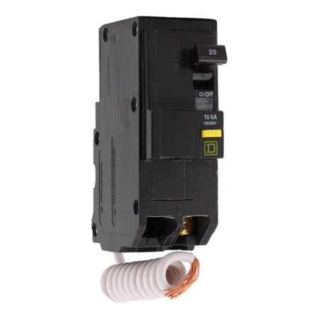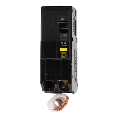 The Square D QO220GFI 20 Amp 2-Pole ground-fault circuit interrupter (GFCI) breaker provides reliable protection for residential 120/240V circuits. Featuring a pigtail neutral connection, it simplifies installation in QO load centers while delivering enhanced safety against ground faults.