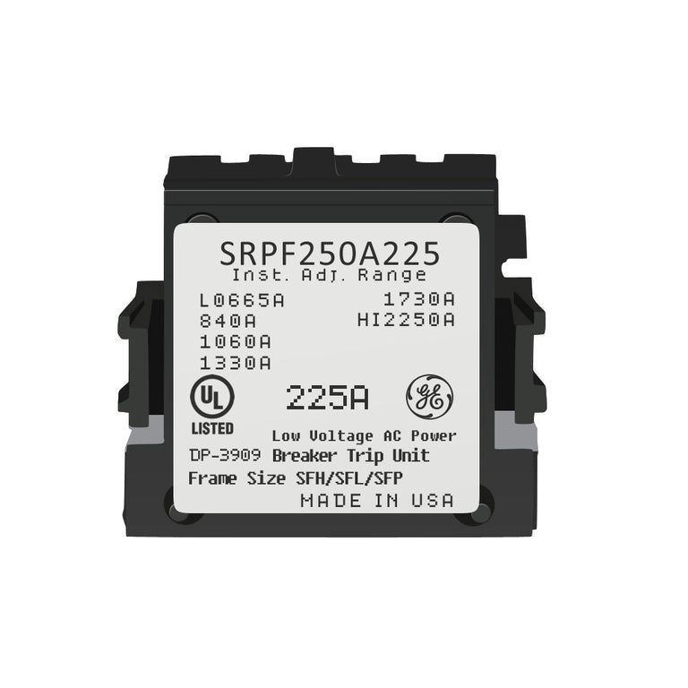 General Electric Molded Case Circuit Breaker Rating Plug three pole 225 ampere and voltage rating of 600 VAC. It features adjustable instantaneous trip current range from 665 - 2250 Amps. It is ideal for motor circuit protection.