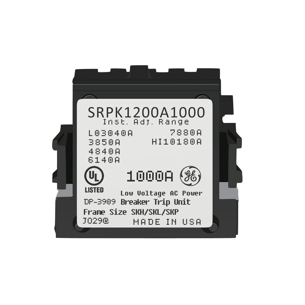 General Electric, Spectra Series, type SRPK, interchangeable rating plug element, rated for 1000A, suitable for use with the 1200A sensor rating, SK series - SKDA, SKHA, SKLA, SKPA molded case circuit breaker frame types, for use with MICROVERSATRIP-PLUS, MICROVERSATRIP-PM solid state electronic trip units & circuit breakers