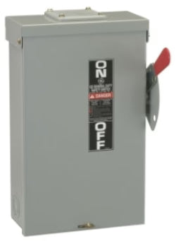 The General Electric TG4322R is a 3 phase 3 pole 240 Volt 60 Amp TG type Disconnect Switch. This switch has a Nema rating of 3R and an AIC rating of 100kA@240V. The TG4322R is a single switch configuration and uses class