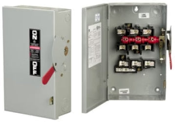 The General Electric TG4325 is a 3 phase 3 pole 240 Volt 400 Amp TG type Disconnect Switch. This switch has a Nema rating of 1 and an AIC rating of 100kA@240V. The TG4325 is a single switch configuration and uses class
