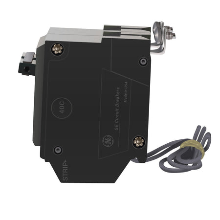 General Electric THQB single Pole bolt-on molded case circuit breaker with shunt trip Miniature circuit breaker has a voltage rating of 120 VAC 120/240 VAC and current rating of 20 Amps. It has an interrupting current rating of 10 kilo-Amps at 120 VAC and 10 kilo-Amps at 120/240 VAC.