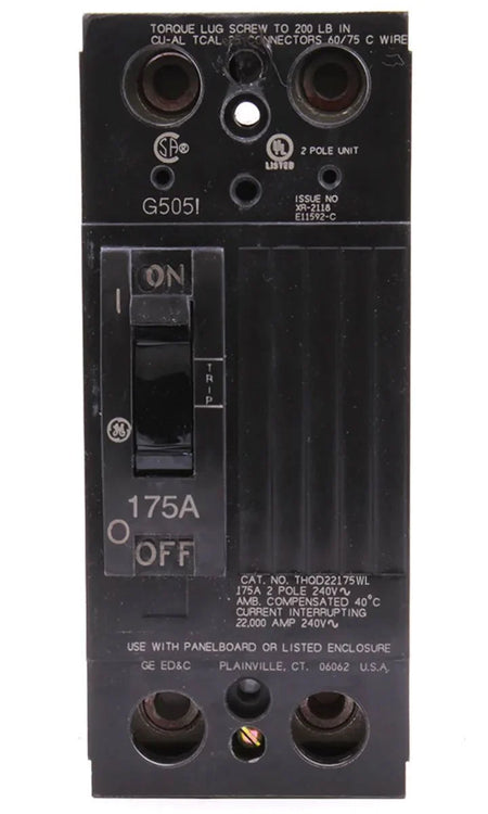 GE 175 Amp THQD22175 Circuit Breaker 2-Pole 240V 10kA Interrupting