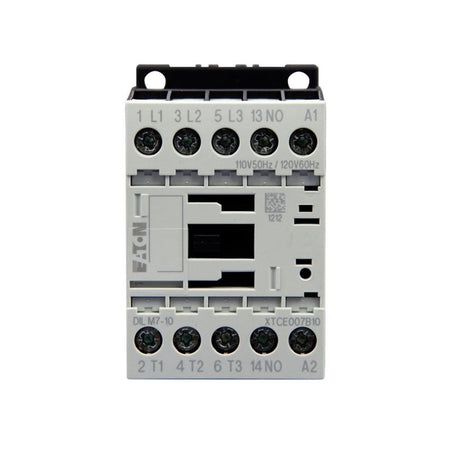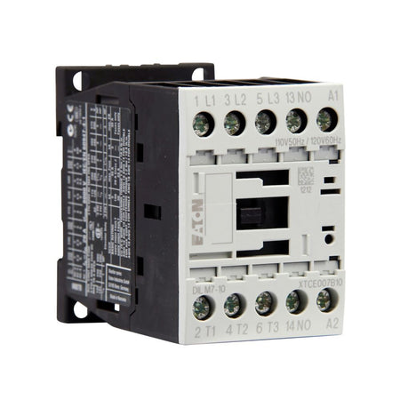 Eaton XT IEC contactor, 7A, 110 Vac 50 Hz, 120 Vac 60 Hz, 1NO, 7A, Frame B, 45 mm, 50-60 Hz, 0.25, 0.75, 1/ 1.5, 2, 3, 5 hp (1/3PH @115, 200, 230/200, 230, 460, 575 V), Three-pole, Screw terminals, Full voltage non-reversing contactor